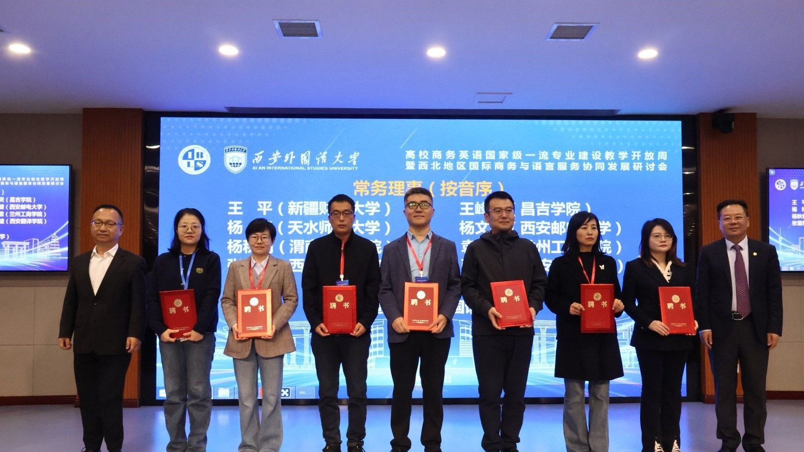 会议期间,西北地区国际商务与语言服务专家指导委员会正式成立,我校商务英语专业带头人王淙教授被聘为副主任委员,商务英语系主任张国建被聘为常务理事,这不仅是对两位老师个人专业能力与学术影响力的高度认可,也彰显了我校商务英语专业在相关领域的地位与贡献。