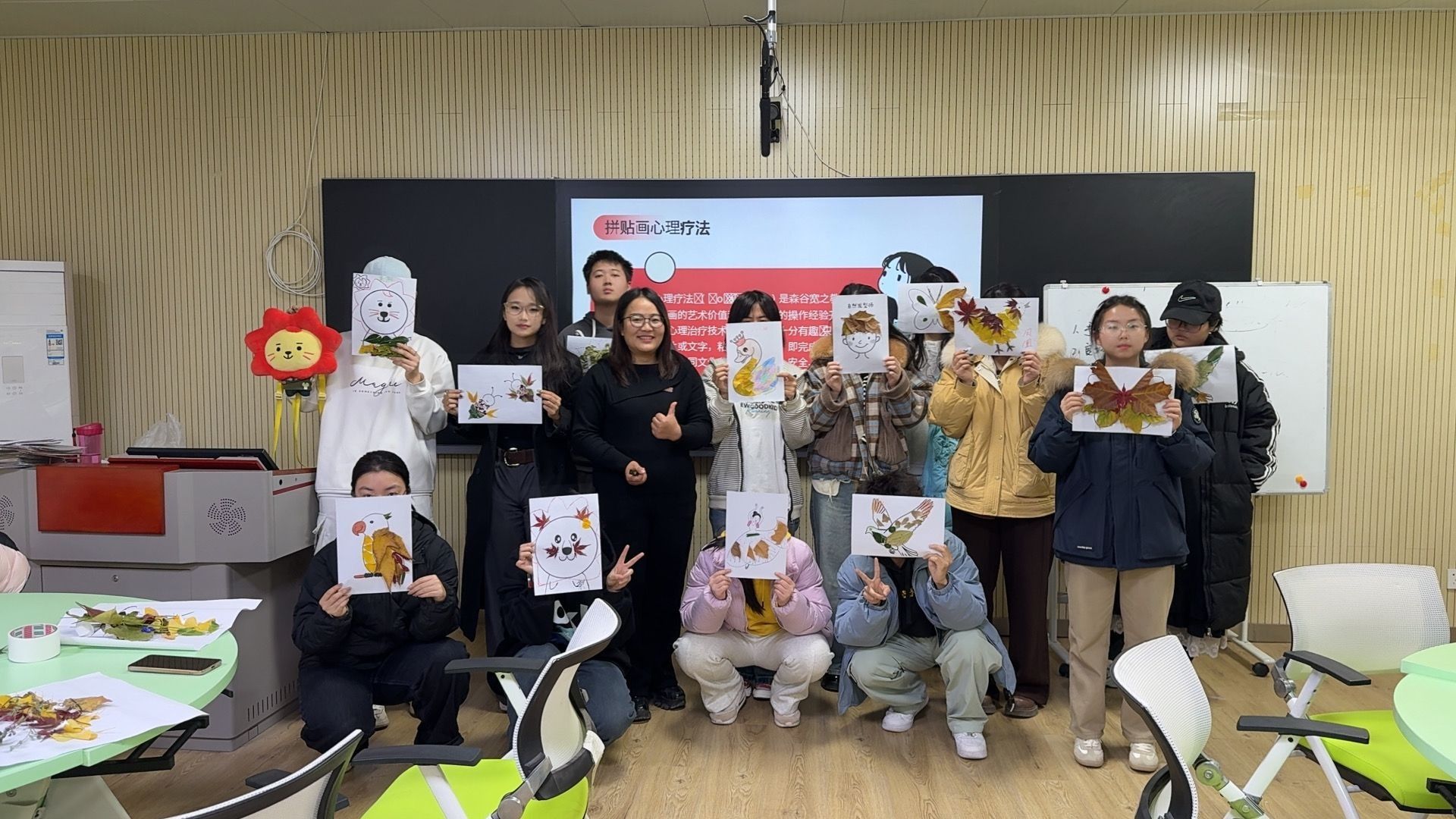 核心环节中,谢晓欣老师详细介绍拼切画心理疗法的基本概念与发展缘起,让大家充分了解这一心理表达形式的内涵。随后成员们盲抽拼切画纸张,结合个人审美与内心感受自由创作拼贴作品,完成后逐一分享创作思路与心理体验,在表达与倾听中释放情绪、传递心声。活动尾声,现场准备有拼切画用纸,鼓励同学们在课余时间自主尝试该疗法,同时邀请大家将作品与心得分享至交流群,让心理疗愈与同伴交流持续延伸。