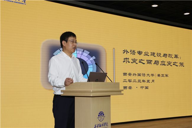 西安外国语大学副校长姜亚军作题为《英语专业建设与改革:求变之需与应变之策》主旨发言