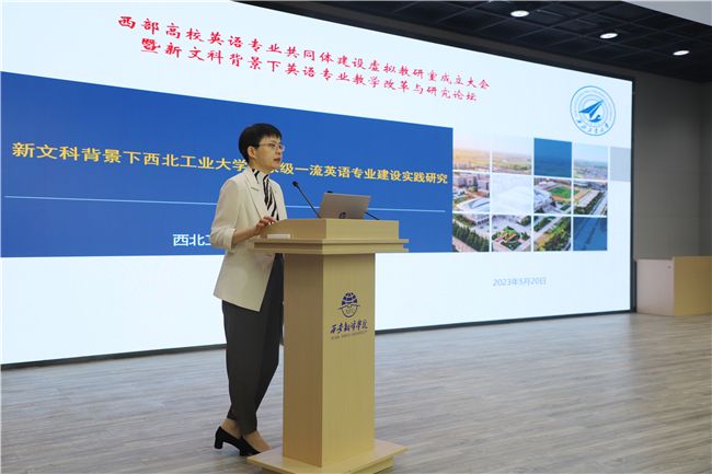 西北工业大学外国语学院副院长张奕作题为《新文科背景下理工科院校国家级英语一流专业建设研究与实践》主旨发言