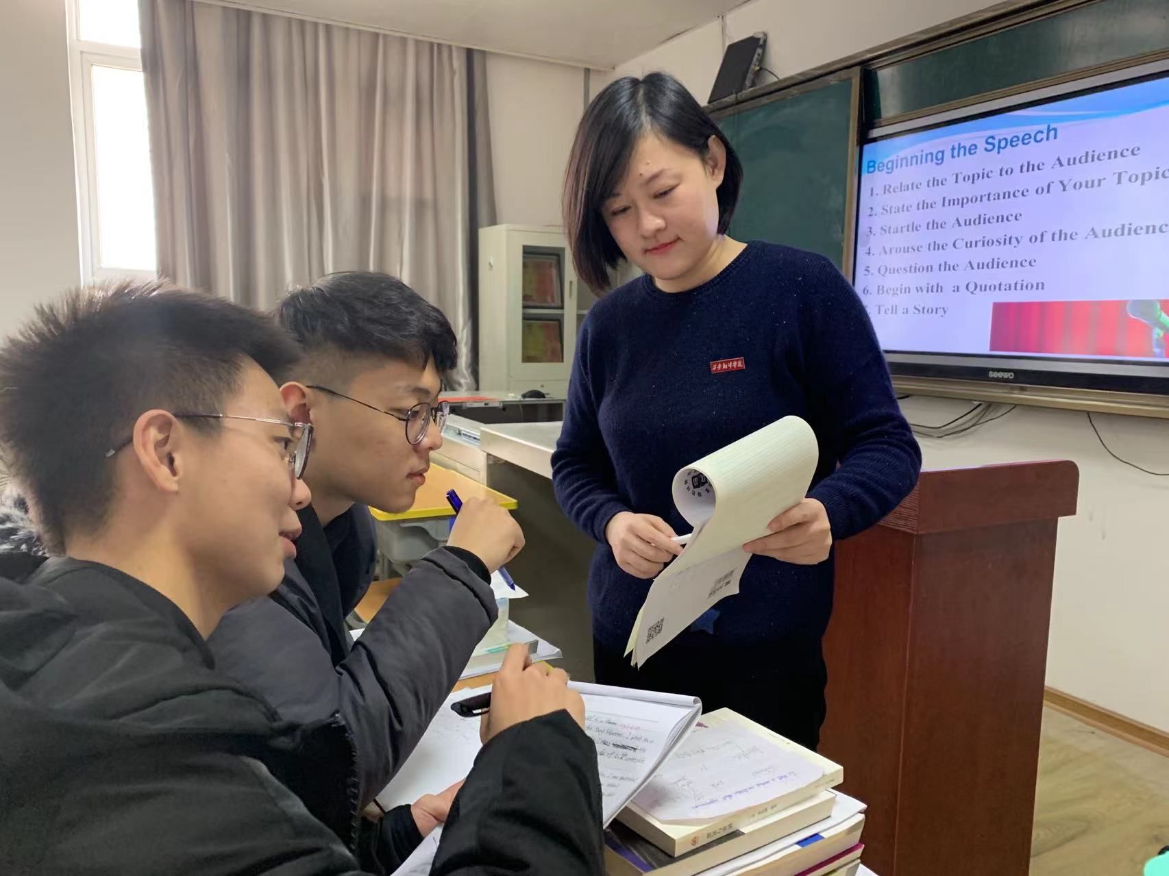 张莹直言,指导比赛跟平时上课大不相同,比赛要比课堂更具针对性、更富挑战度、更需耐心值。比赛中的变数很大,作为指导教师要时刻关注比赛进程、学生状态,帮助学生缓解紧张情绪等。2017年,她和另一位老师带领学生参加“希望之星”全国大学生英语演讲赛(全国决赛)时所经历的事情至今还令她印象深刻。