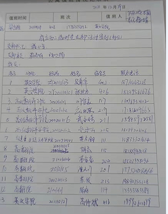 为配合每日核酸检测的要求,高翻院党委成立了党员志愿者小分队,主要负责每日核酸检测从出发到结束的每一段路程中大家站队的要求,间隔两米宽的距离,不能随意离开队伍,保证每一位同学达到日检要求,在今日的活动中,高翻院党员维序小分队按小组在每个分配的值班点,认真维序,起到了良好的引导的作用,保证了核酸检测的有序展开。