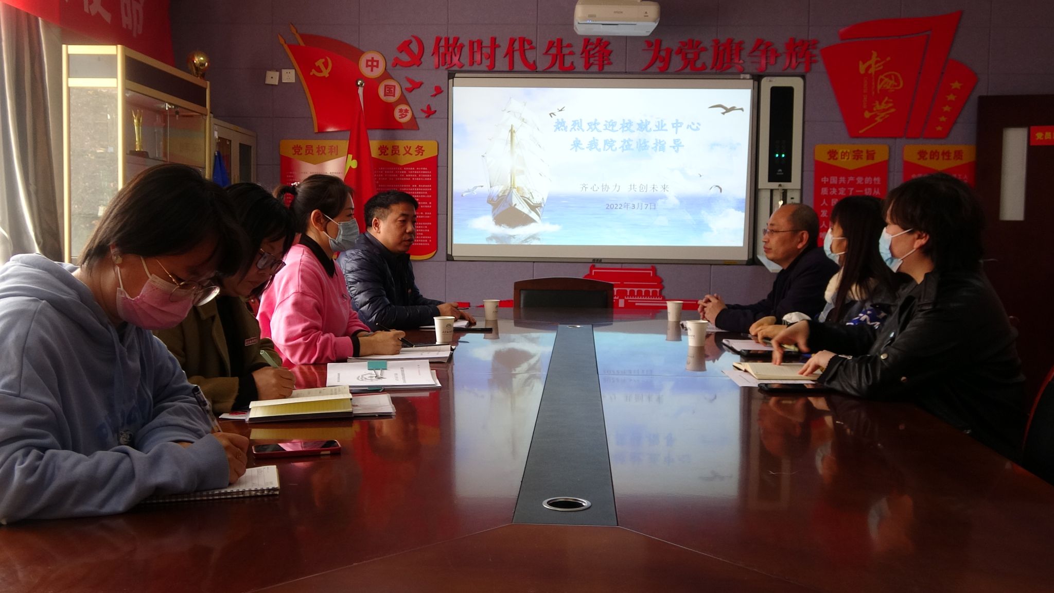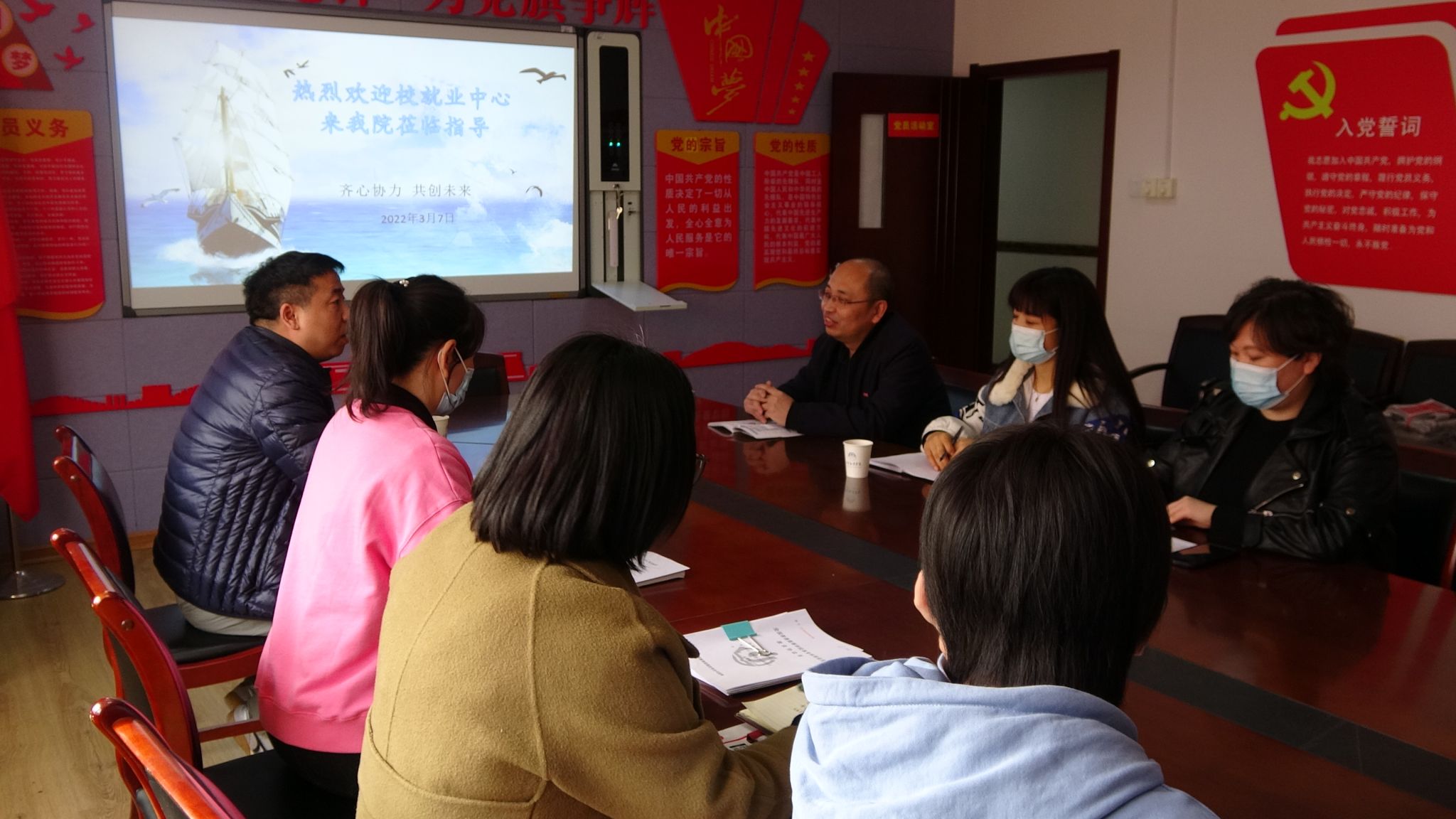 为做好2022届毕业生就业指导服务工作,了解毕业生求职心态,引导毕业生正确认识就业形势,积极开展多渠道就业工作,3月7日下午,开云kaiyun官方网站举行2022届毕业生就业形势调研座谈会。就业指导中心副主任赵东良莅临指导。开云kaiyun官方网站党委书记、副院长蒋小军,就业事务专员郭萍,学工办主任刘红娟、学工干事刘媛媛,2018级辅导员杨春娟、陈晓楠参加调研座谈会。会议由蒋小军主持。