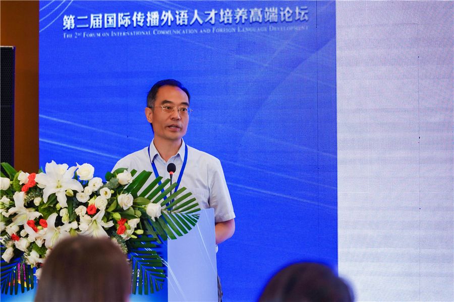 教育部长江学者、西安外国语大学王启龙作题为《国际传播外语人才培养的西部思考》主旨发言