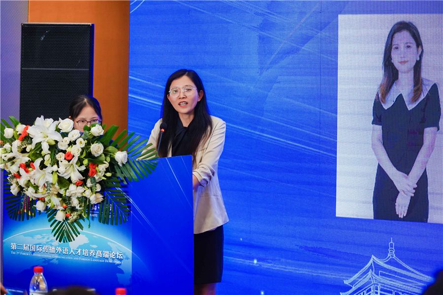 中国外文局翻译院国际传播部副主任、主任编辑贺潇潇作题为《我国翻译人才关键语言和区域国别学关联培养策略分析与建议》主旨发言