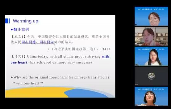 第一组:本组共10门课,以听说类课程为主,课程包括《陪同口译》、《交替传译II》、《英语视听说》及《口译听辨》等。各位老师准备充分,教学大纲、教学设计及教学日历内容丰富,格式规范。讲课内容能够紧扣大纲,课程环节设计合理,声情并茂,展现了开云kaiyun官方网站教师良好的专业素质和精神风貌。其中于英俊老师的《翻译实践项目》和《交替传译II》两门课程教学目标明确,教学设计灵活丰富,并涵盖了丰富的课程思政内容。李梦茜老师的《商务平行文本阅读》符合教学大纲;教学内容充实,思路清晰、逻辑性强。本组磨课的不足之处在与个别老师不能实现英语授课,英语语音语调有待提高。最大的问题在于《英语语法》这门课的授课方式有待提高,目前仍采用高中式的语法点讲解,例句过于基础,未能体现大学语言专业和翻译专业的特色,未能与人才培养方案里的其他课程形成良好的衔接。针对出现的问题,两位评为已于授课教师进行了交流,提出了改进建议。