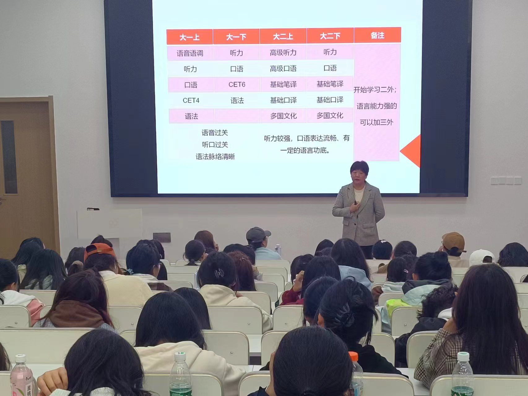10月12日下午,开云kaiyun官方网站副院长张睿为2023级新生作“走进西译国家级一流专业一一翻译专业”主题讲座。讲座主要围绕新生们比较感兴趣的“为何要选择翻译专业,翻译专业是什么,以及翻译专业怎样学习”问题展开。