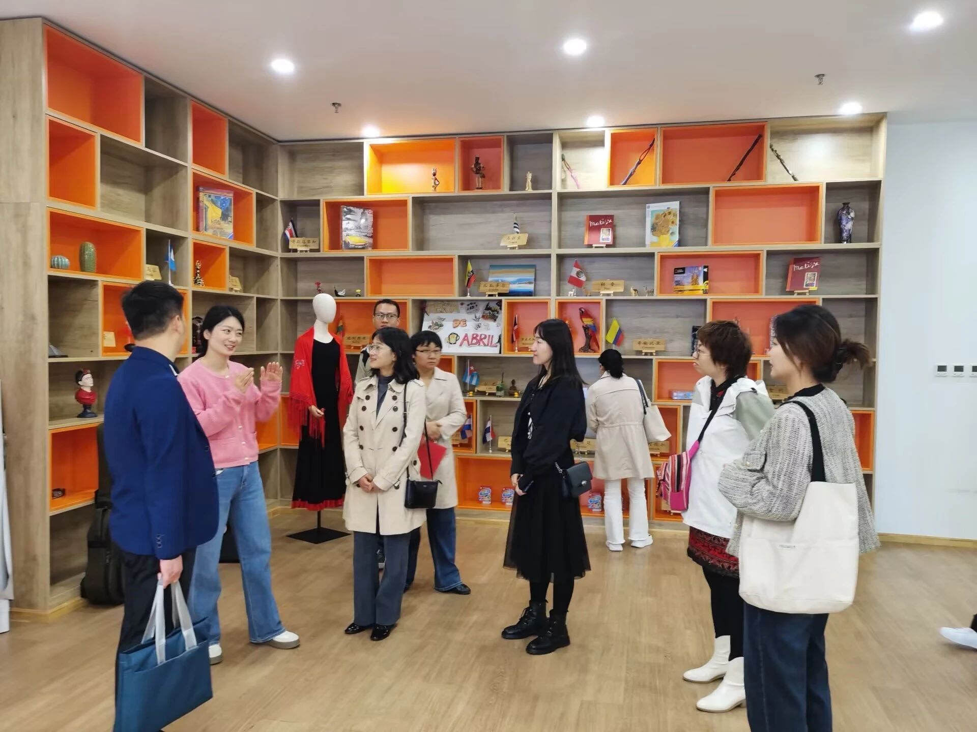 分组交流会后,一行人又参观了我校的外国语言与文化实践中心。银川能源学院的教师们对我校的教学设施和实验设备赞不绝口。他们表示,“这里的设施设备非常先进,能够让学生们更好地理解和掌握知识,这是我们需要学习和借鉴的。”