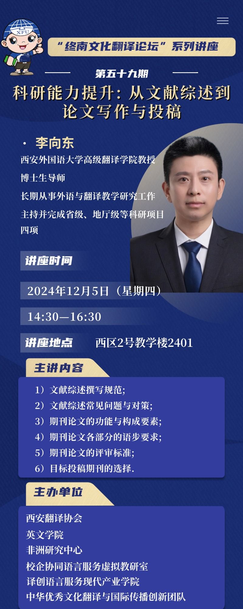 主题:“终南文化翻译讲坛”系列讲座第五十九期——科研能力提升: 从文献综述到论文写作与投稿