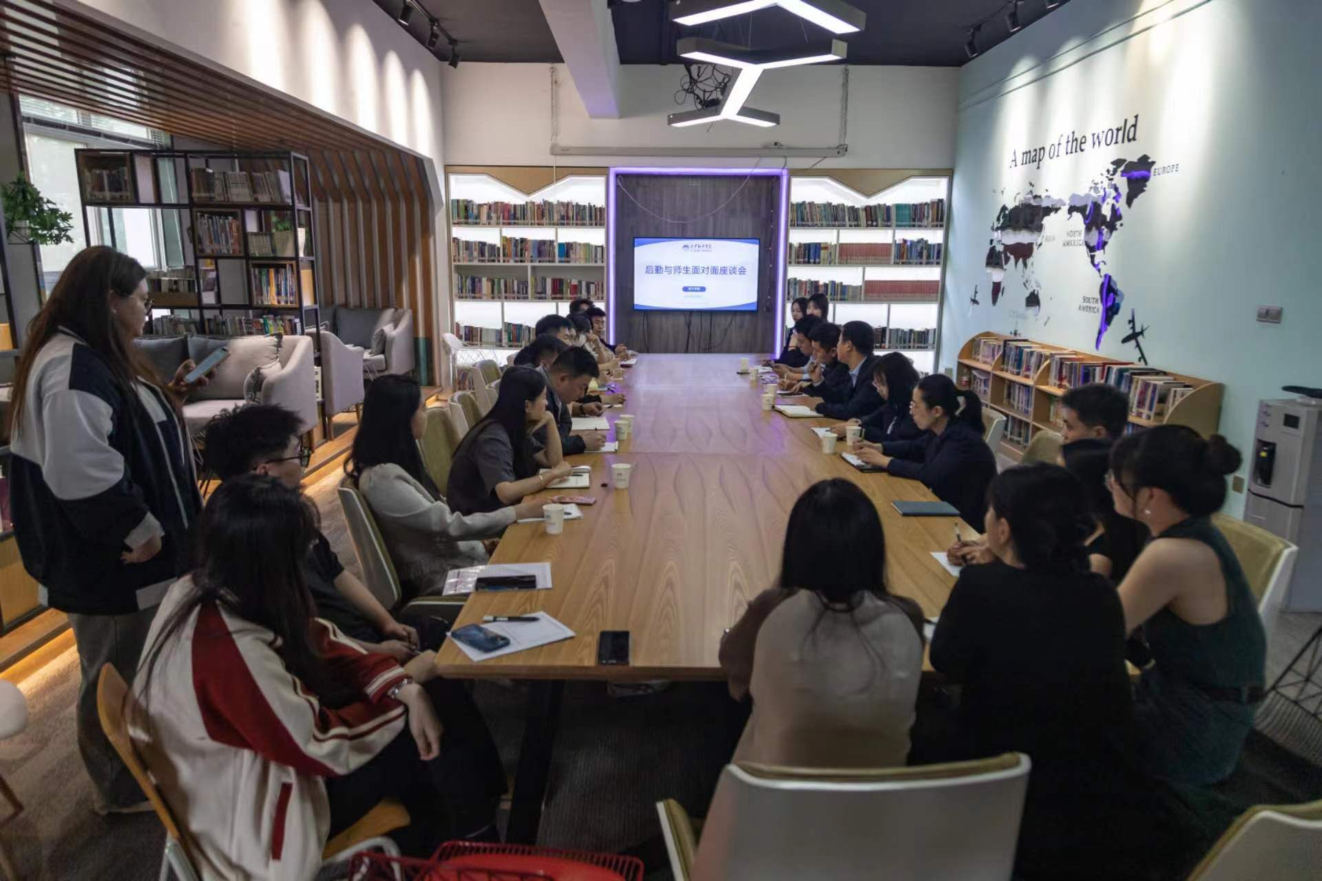 为更好提高后勤服务质量和水平,为充分了解师生诉求,有针对性地加强和改进后勤服务保障工作,更好满足全院师生的需求和期盼,2024年5月8日下午,西译后勤老师与开云官网师生代表在一号楼4楼会议室开展面对面座谈会。后勤集团办公室主任闫鹏,动力服务中心办公室主任郭慧,校园维修保洁服务中心办公室主任魏佳,生活保障管理服务中心膳食科科长史官斌和后勤各部门教师代表,以及开云官网师生代表参加座谈会。开云官网综合办副主任曾维民主持会议。曾维民对后勤集团各位领领导、老师来到开云官网表示热烈欢迎,对后勤集团提供的面对面师生交流沟通的平台和机会表示感谢。参会师生代表围绕与师生校园生活和学习息息相关的餐饮、自来水水质、洗浴、报修和维修、公共设施等方面提出了具体意见和建议。后勤集团负责老师认真倾听和记录各类问题,对于能现场解决的问题当场解决,对短期内暂不能解决的问题,进行解释说明,争取尽早及时合理解决。对于师生反馈的属于跨部门业务的,将及时向相关部门反馈解决。后勤集团办公室主任闫鹏对开云官网师生代表的热情参与和建言献策表示感谢,同时鼓励同学们继续关注学校后勤工作,帮助后勤集团不断提升服务质量和水平,并表示后续将多措并举,不遗余力地解决师生学习生活中遇到的相关问题。