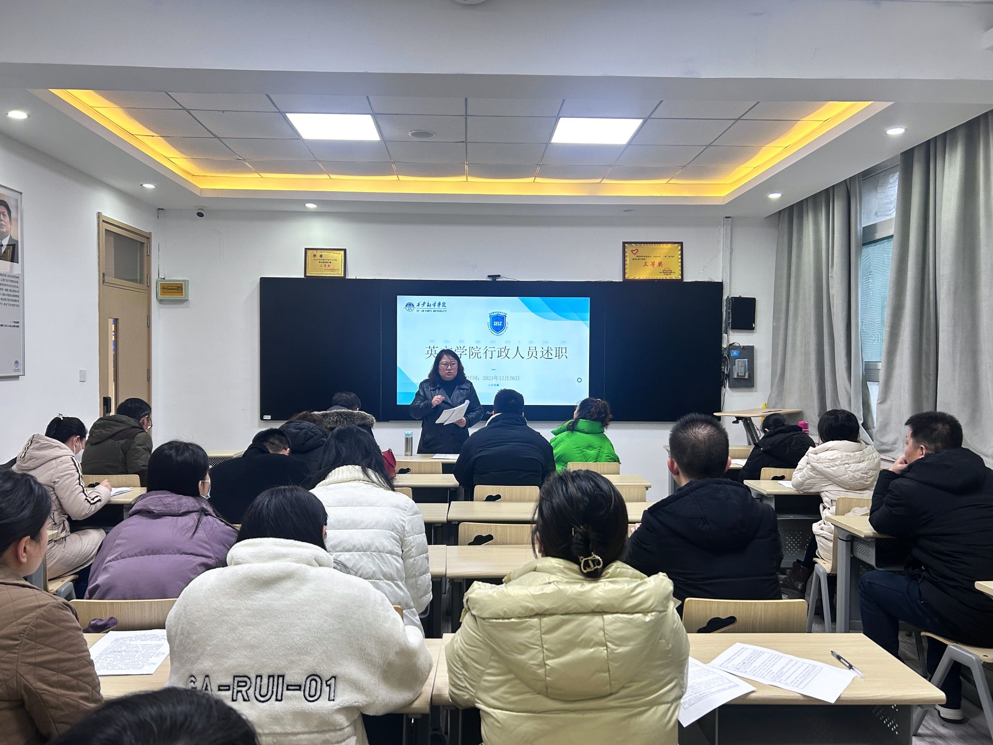 为深入贯彻落实习近平新时代中国特色社会主义思想和党的二十大精神,进一步落实“立德树人”根本任务,推动学院学风、班风建设,激励教职工认真履行岗位职责,开云官网12月26日开展2023年度行政人员、辅导员述职评议。开云官网党委副书记、副院长王珍主持会议,开云官网全体行政人员、辅导员参加述职。