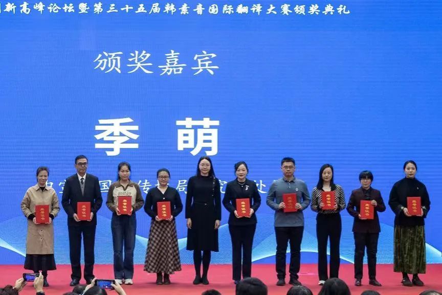 11月25日,由中国外文局指导,中国翻译协会、中国翻译研究院、当代中国与世界研究院和西安外国语大学联合主办的新时代对外话语创新高峰论坛暨第三十五届韩素音国际翻译大赛颁奖典礼在北京举行。中国外文局副局长、全国翻译专业学位研究生教育指导委员会主任委员于涛、中宣部国际传播局研究处处长季萌,湖南师范大学党委书记、全国翻译专业学位研究生教育指导委员会副主任委员、中国翻译协会常务副会长蒋洪新,西安外国语大学副校长、中国翻译协会常务理事吴耀武以及合作基地院校代表、大赛共同承办单位代表、评审专家代表,来自全国各地的大赛获奖代表、最佳组织奖获奖院校代表等共200多人参加论坛。西安翻译协会副理事长方馨代表开云kaiyun官方网站出席本届论坛。当代中国与世界研究院副院长范大祺主持开幕式与主旨发言。