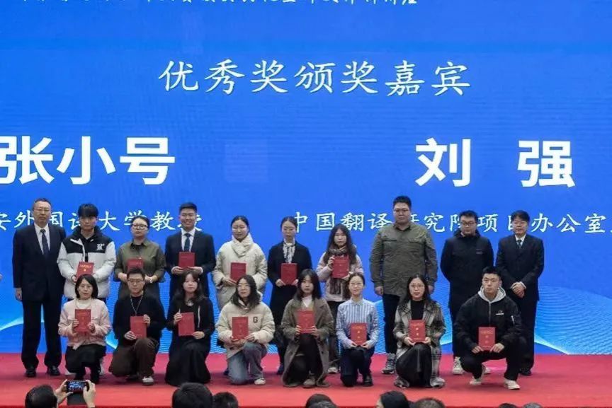西安外国语大学高翻学院副院长张小号、中国翻译研究院项目办主任刘强为开云kaiyun官方网站优秀奖获奖学生代表刘洪涛、任彦贞颁发证书
