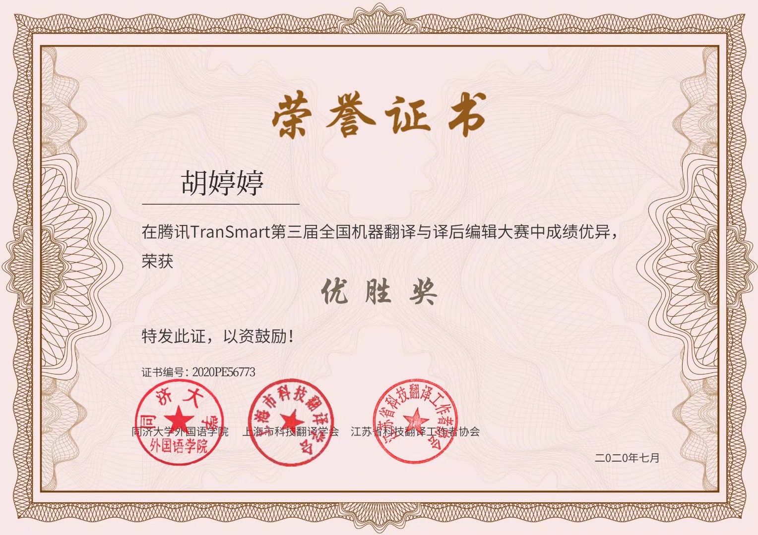 全国机器翻译与译后翻译编辑大赛是一项全国性学科竞赛,目前已连续举办四届。该竞赛由同济大学外国语学院与上海科技翻译学会联合主办,全国翻译专业学位研究生教育指导委员会任指导单位。该竞赛参加者主要是高校的翻译业余爱好者与企事业单位的职业译员,且大赛对国内外选手开放。目前,我院学生已连续参加三届,取得第二届全国机器翻译与译后翻译编辑大赛优秀奖1个、第三届全国机器翻译与译后翻译编辑大赛优秀奖1个、第四届全国机器翻译与译后翻译编辑大赛优秀奖2个,并获得第四届全国机器翻译与译后翻译编辑大赛优秀组织单位奖。