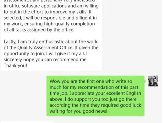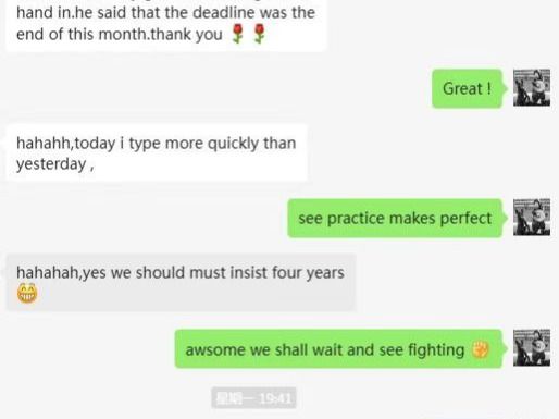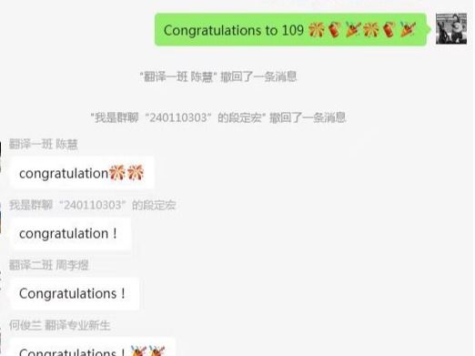 这种创新正引发链式反应。随着2024级翻译卓越班“全外语氛围”的显著育人成效,张灵云老师负责的八个班级所在的班委群里也掀起了一股学习英语的热潮,紧接着她所带的非卓越班级也开始自发进行口语练习和班级事务“英语管理化”。欣喜于学生们的积极主动,同时为了后期能够更好的和学生们自如交流,张灵云老师也开始加强自身的学习,模拟假条审批、上报考勤、评优材料、填写表格等多种管理事务场景,逐渐规范英语对话流程。据悉,截至目前每天来到她办公室进行英文谈话的学生以及她所收到学生的英文信息从最初的20%逐渐上升到现在的65%,“敢用英语沟通”在张灵云老师所在的班级逐渐形成一股风气。