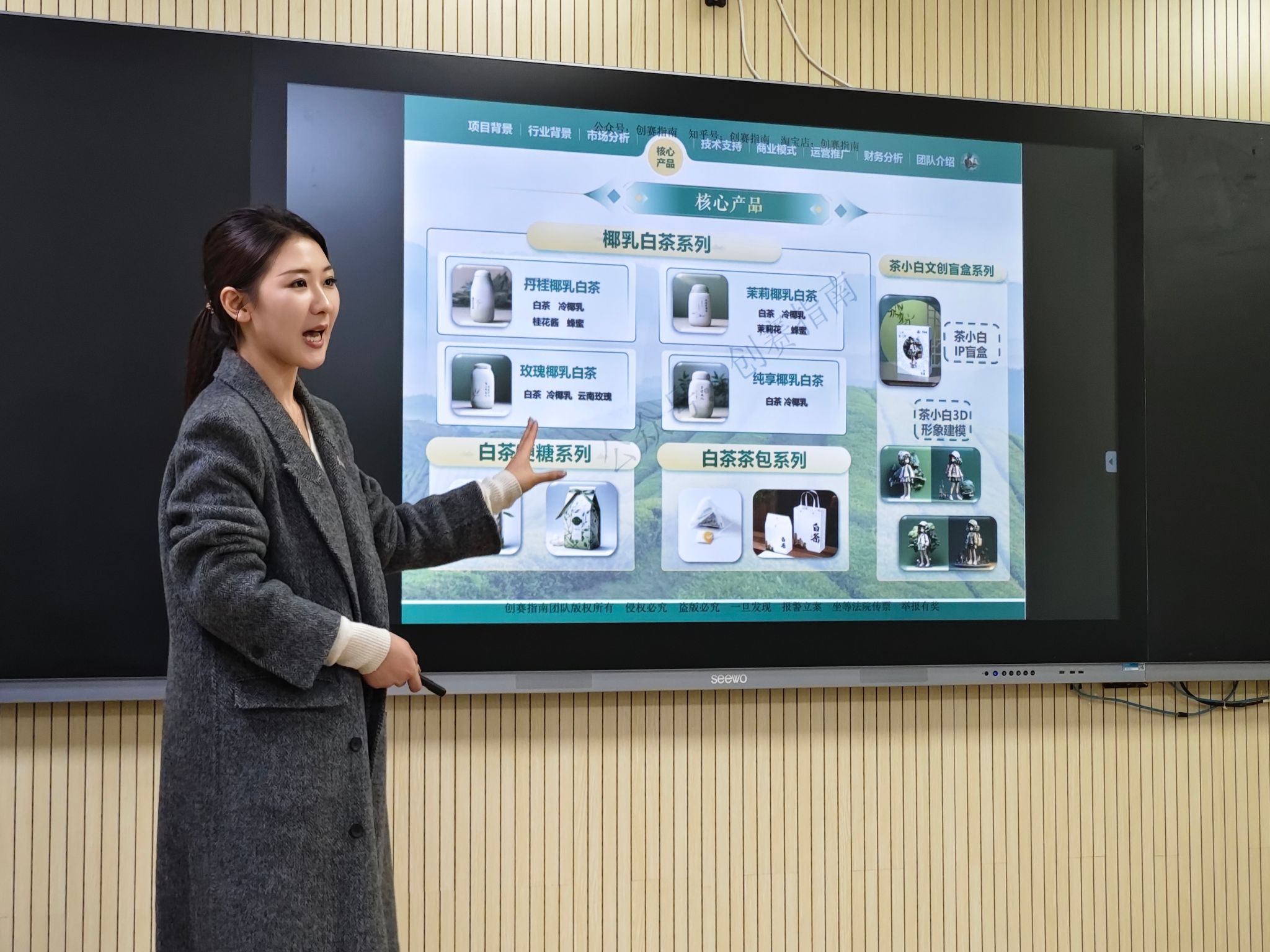随后,创新创业学院专职教师石嘉妮凭借丰富的实践经验和深入的理论研究,为师生们带来了一场精彩纷呈、干货满满的知识盛宴。她围绕创新创业大赛,详细阐述了语言服务领域的创新机遇与挑战。通过分析多个成功的创新创业案例,深入浅出地讲解了如何从市场需求出发,挖掘赛事的创新点,如何组建高效的创业团队,以及如何撰写具有吸引力的商业计划书等关键内容。同时,还与同学们分享了在创新创业过程中如何应对困难与挫折,保持坚定的信念和持久的热情。讲座过程中,同学们全神贯注,积极互动,现场气氛热烈。
