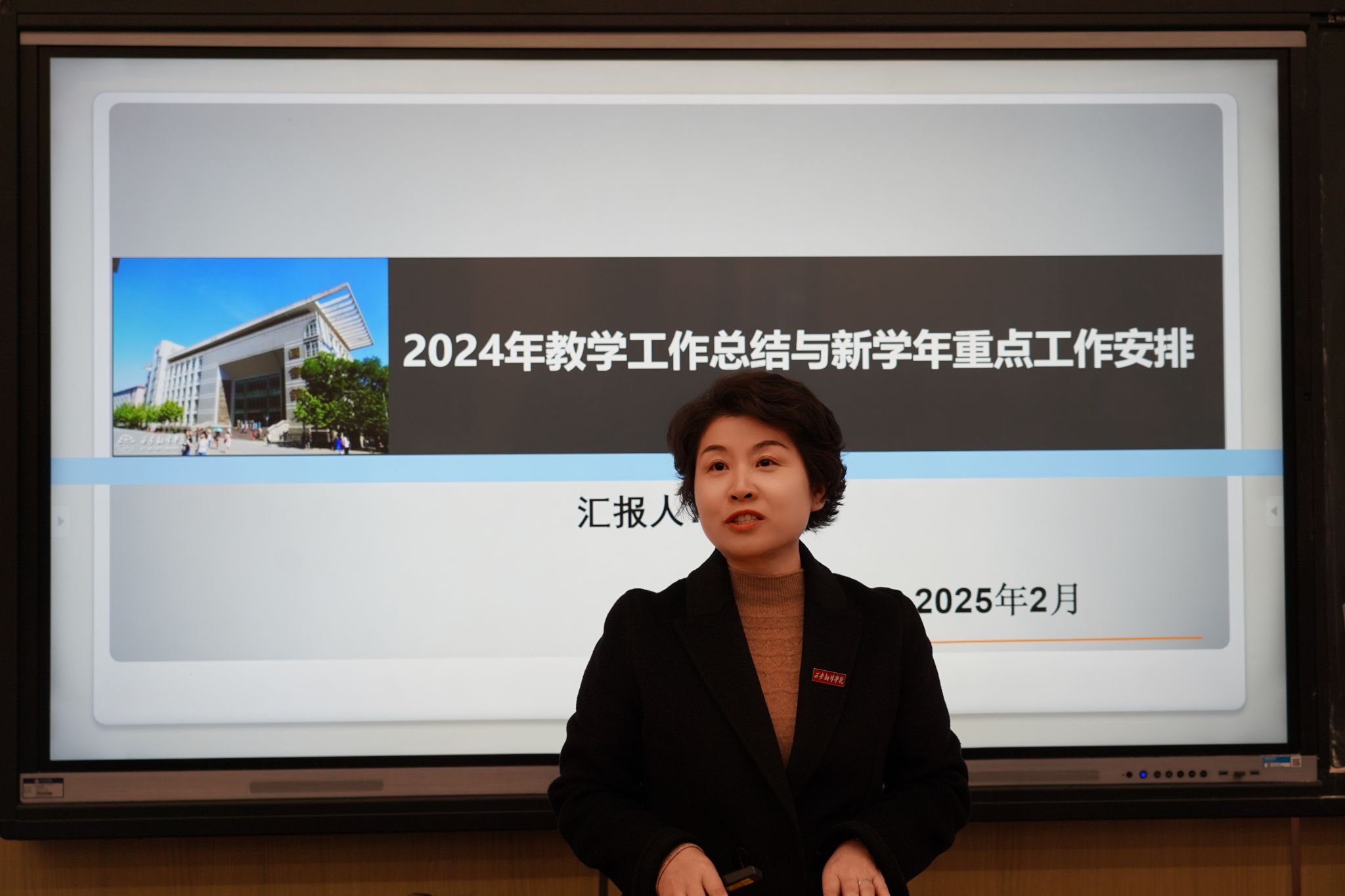在学院预算工作方面,她详细说明了2025年度预算原则和依据,确保学院各项工作的经费保障合理、高效。对于教科研保障工作,进一步优化资源配置,此外,她还对办公室搬迁工作进行了说明,提醒各部门做好相关准备,确保搬迁工作顺利进行,不影响正常办公秩序。