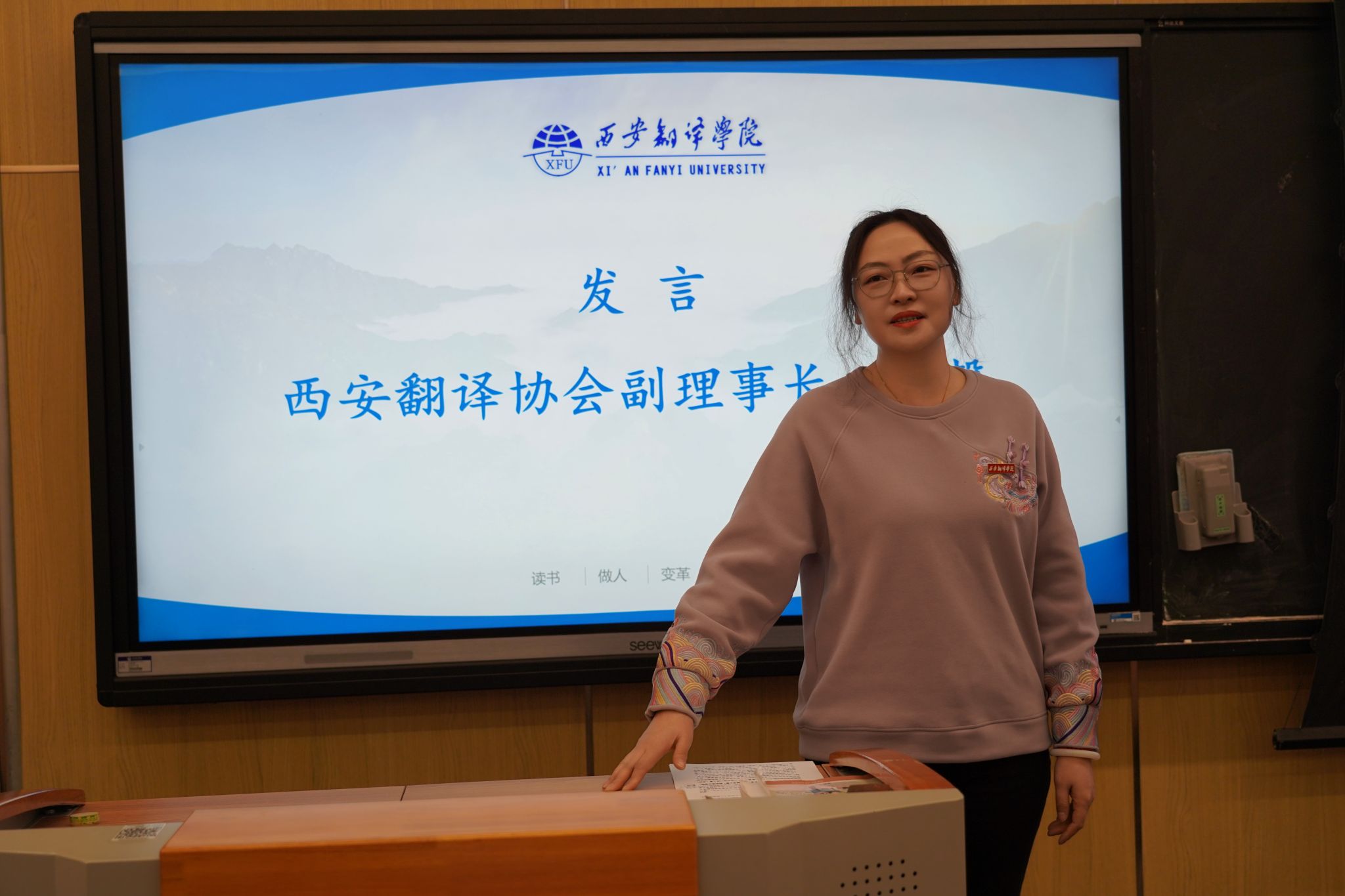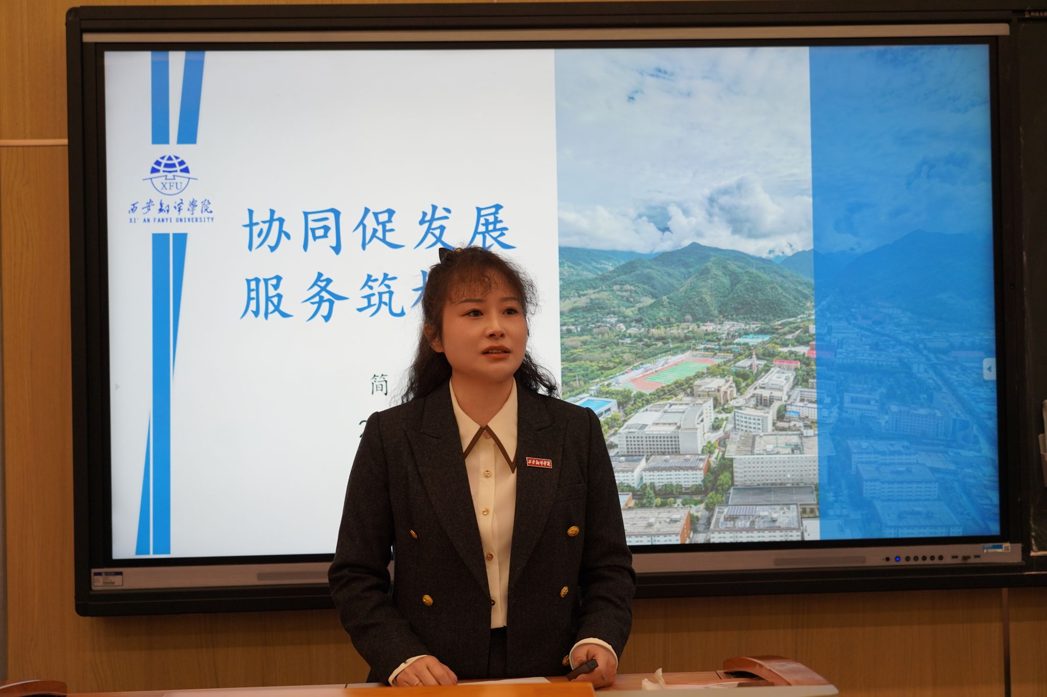 西安翻译协会副理事长方馨对上年度学院外语类赛事进行了全面总结,肯定了学院学生和教师在赛事中的出色表现。针对协会本年度工作安排,她表示,将进一步加强与学院教师的合作,组织更多丰富多彩的外语活动,为学生提供更多展示语言能力的平台,同时也将为教师提供更多专业培训和交流机会,助力学院外语教学水平的提升。