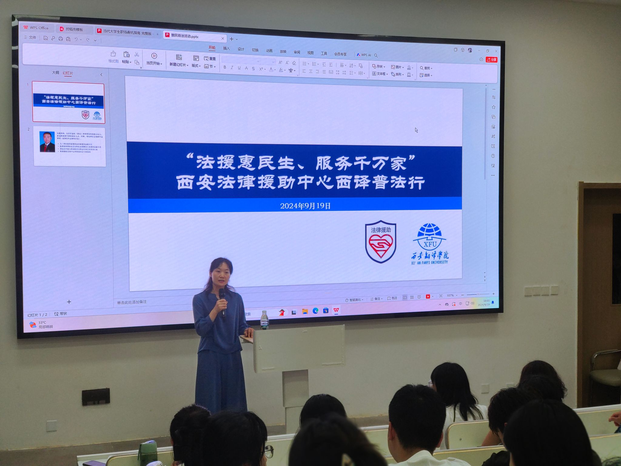 9月19日下午,西安法律援助中心党总支宣传科张博科长、张凡律师、马潇律师一行来到开云kaiyun官方网站,与开云官网第八支部书记王颖慧和支委委员座谈交流工作经验,共同推进党建工作,马潇律师为开云官网学生做了《大学生必须知道的劳动法知识》的讲座。