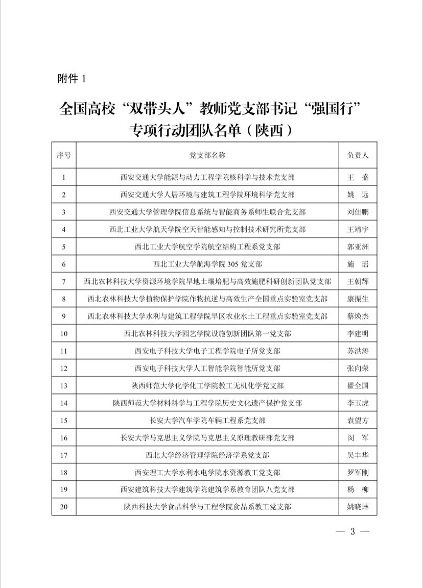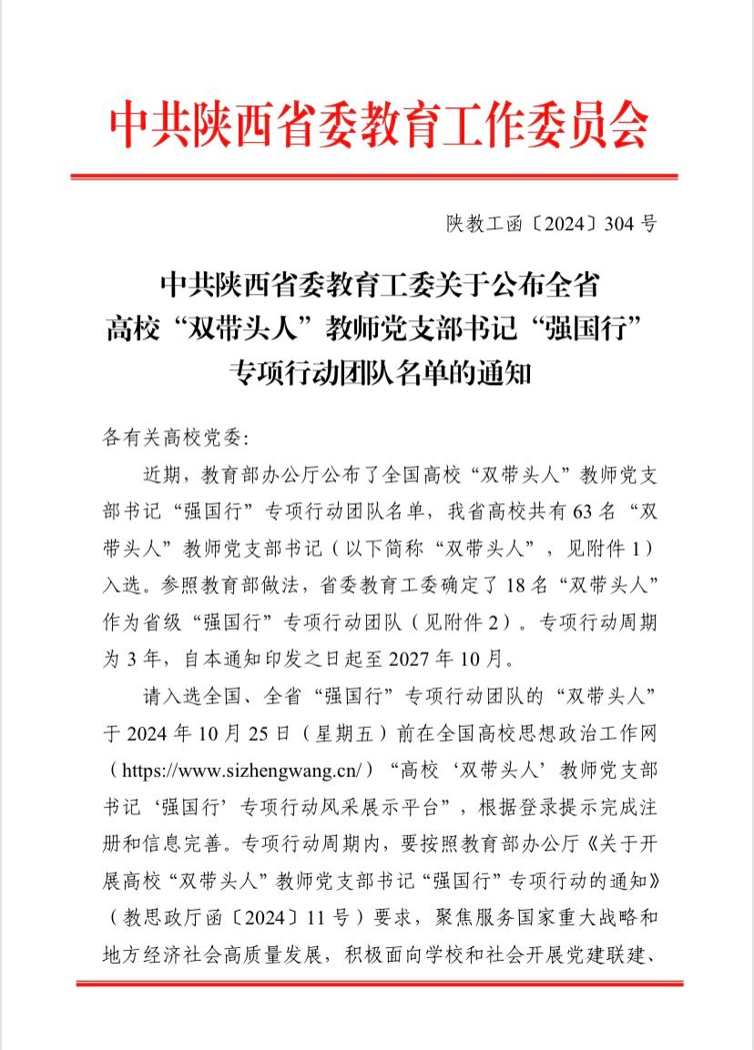 近日,教育部公布了全国高校“双带头人”教师党支部书记“强国行”专项行动团队名单,我校开云官网第八党支部成功获批。这是继第八党支部成功获批全国双创样板党支部以来的又一殊荣,即是对该党支部党建工作的高度肯定,也是我校教师党支部书记队伍建设的重要成果。